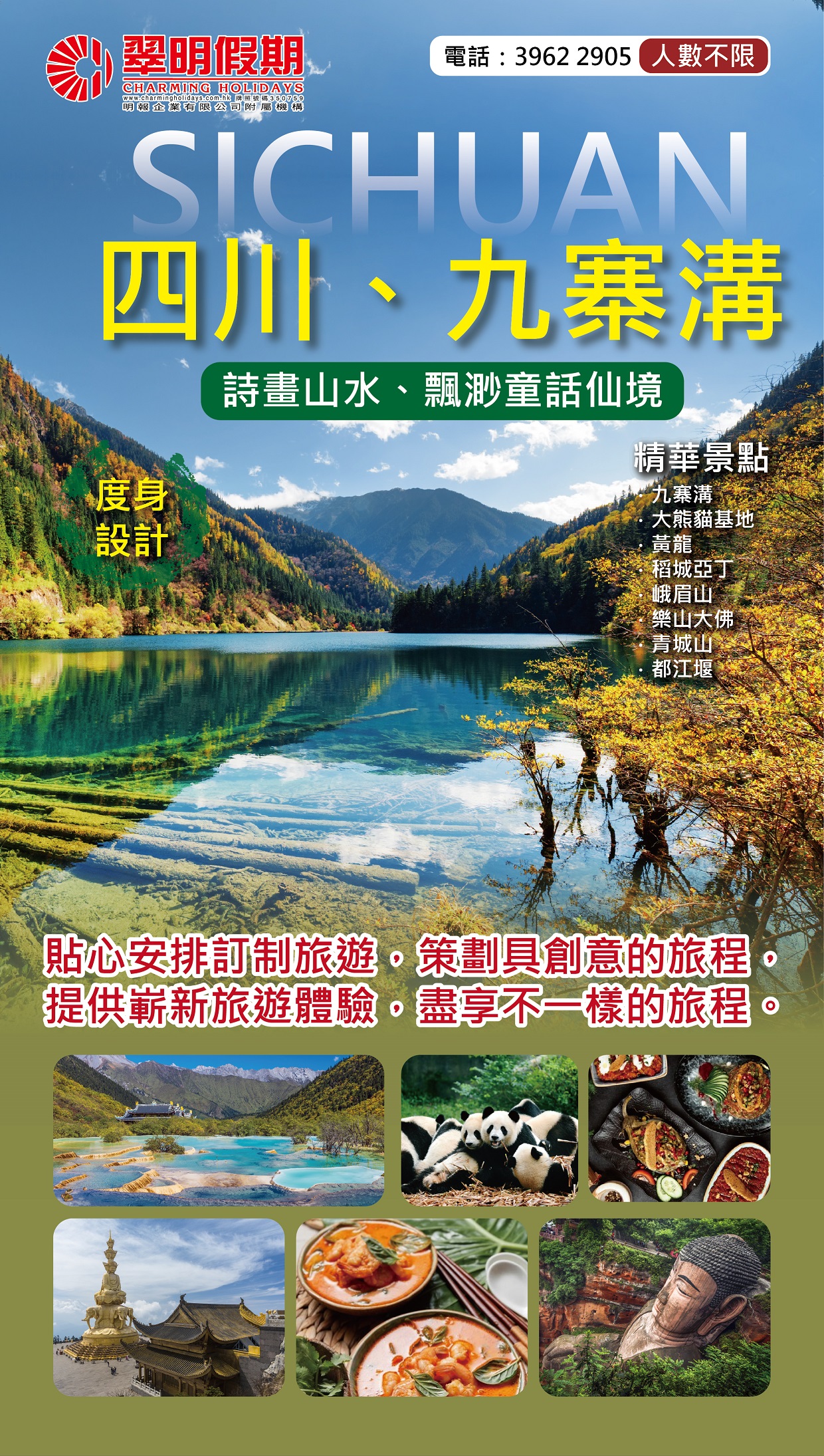四川位於中國西南部,是一個充滿自然美景和豐富文化的地方。其中最著名的旅遊景點之一就是九寨溝。九寨溝是一個壯麗的自然保護區,擁有獨特的多彩湖泊、瀑布和山谷。這裡的風景如詩如畫,令人陶醉。可以漫步在湖畔,欣賞著湛藍的湖水和周圍的原始森林。此外,四川還有其他令人驚嘆的景點,如峨眉山和都江堰。峨眉山是一個古老的佛教聖地,擁有壯麗的山脈和古寺廟。都江堰是中國古代的一個灌溉系統,被認為是世界文化遺產。在四川,還可以品嚐到辣味美食,如火鍋和川菜。四川是一個兼具自然之美和人文魅力的旅遊勝地,絕對值得一遊。