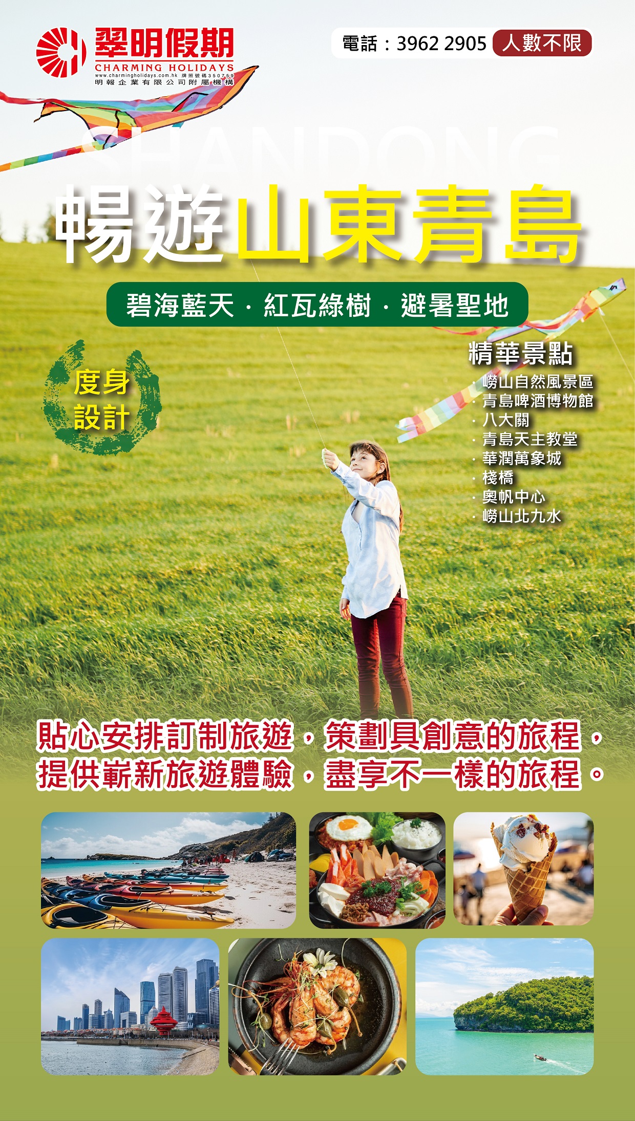 青島,位於中國山東省的海濱城市,以其迷人的海岸線和傳統文化而聞名。這個城市擁有豐富的歷史遺跡和美麗的自然景觀。可以參觀青島啤酒博物館,了解這個城市作為啤酒之都的歷史和文化。五四廣場是青島的標誌性景點,紀念著中國現代文化運動的起源。青島的海灘是一個放鬆身心的好去處,可以享受陽光、沙灘和海浪的樂趣。此外,還可以品嚐到新鮮的海鮮和青島特色小吃,例如海鮮煎餅和燒烤章魚。青島結合了海洋風光、文化遺產和美食,是一個令人難以忘懷的旅遊目的地。