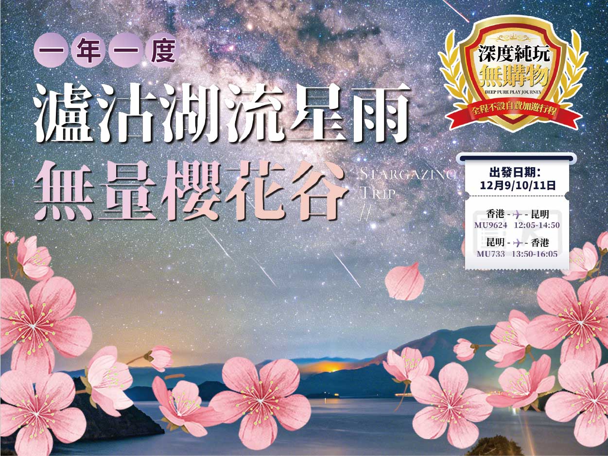 8天【流星雨&櫻花海】雲南一年一度瀘沽湖・銀河墜落女兒國觀星奇旅 ~ PCKKM