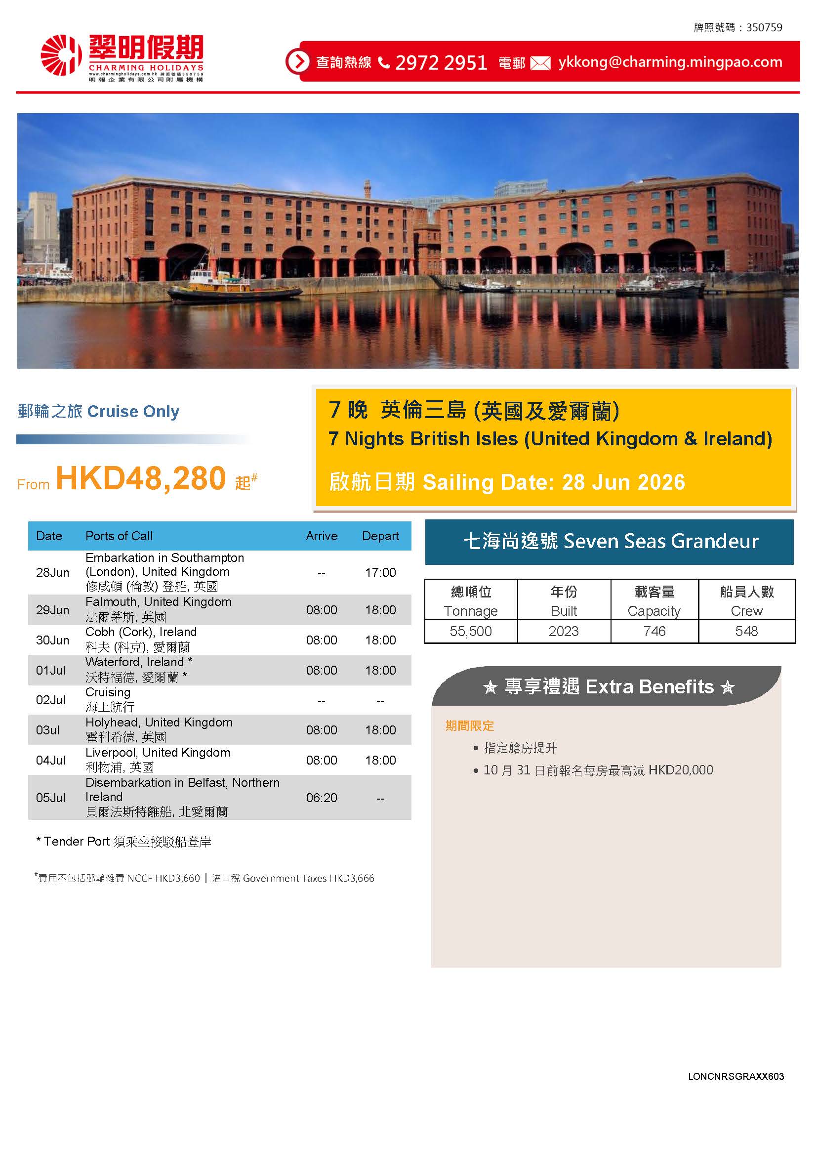 七海尚逸號 – 7晚英倫三島 (英國及愛爾蘭)