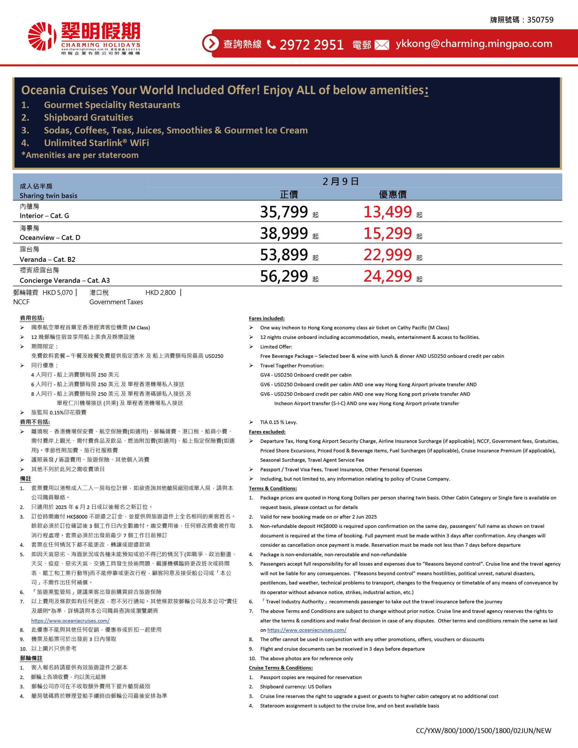 憲章號 – 12晚香港至首爾精選郵輪套票