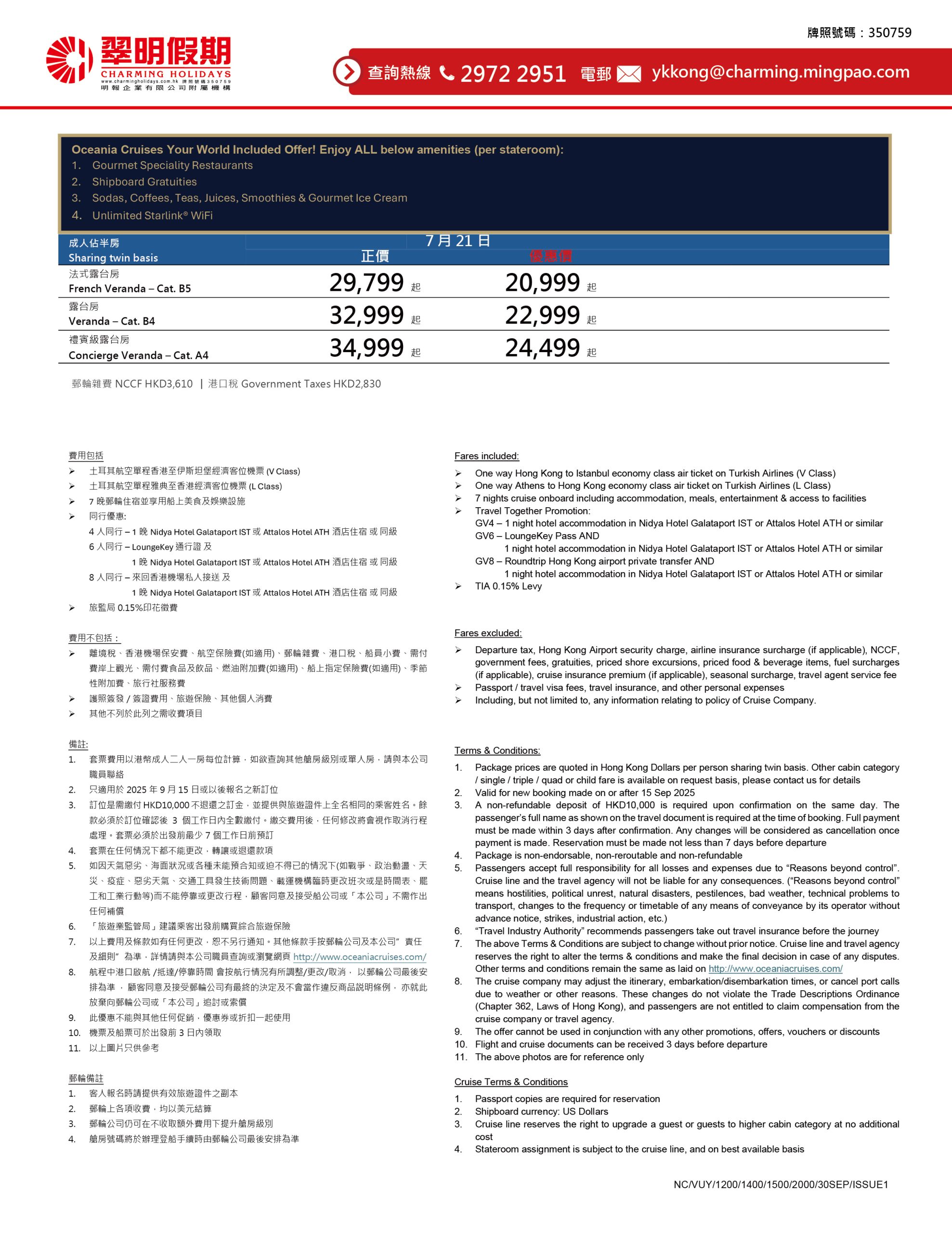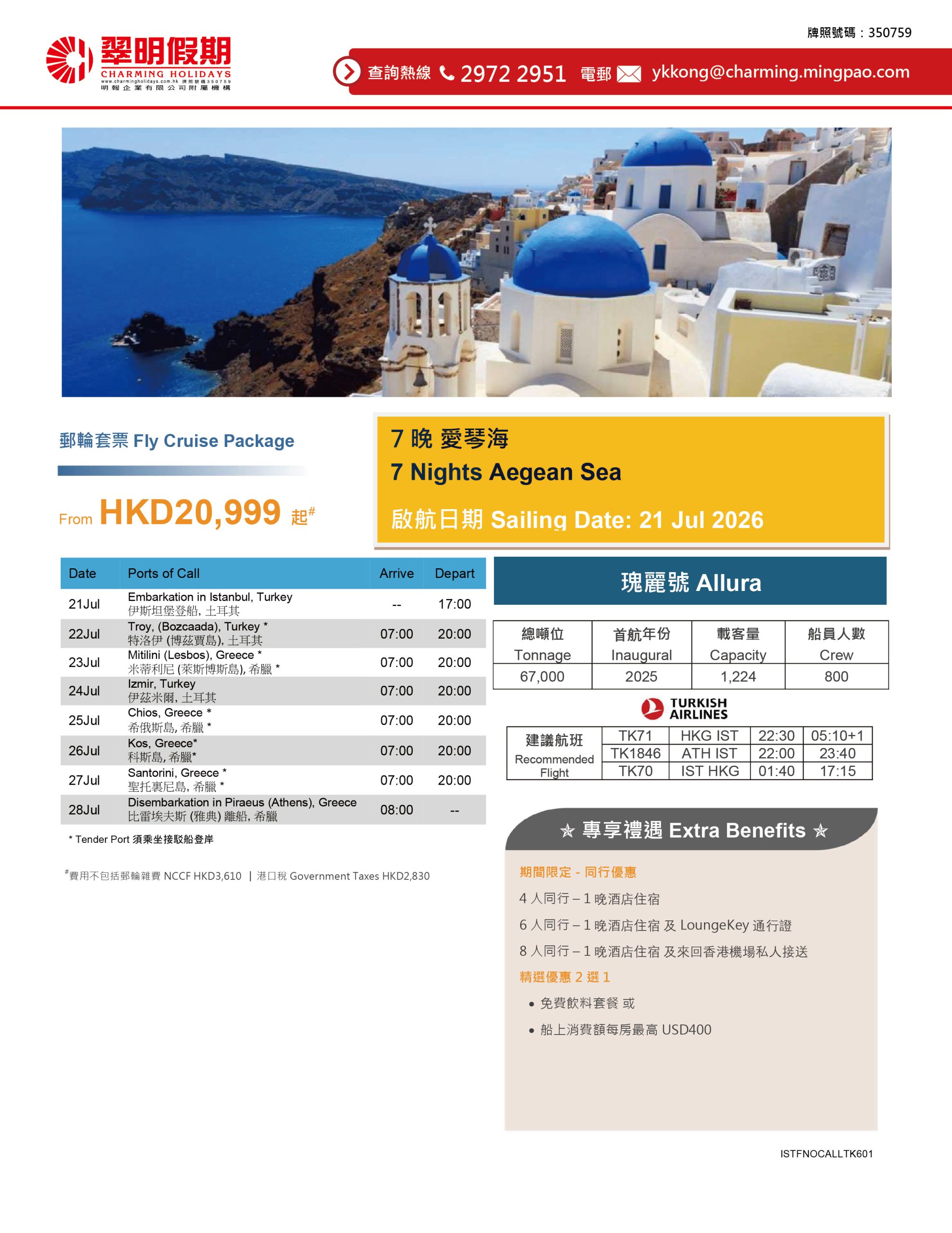 瑰麗號 – 7晚愛琴海郵輪套票