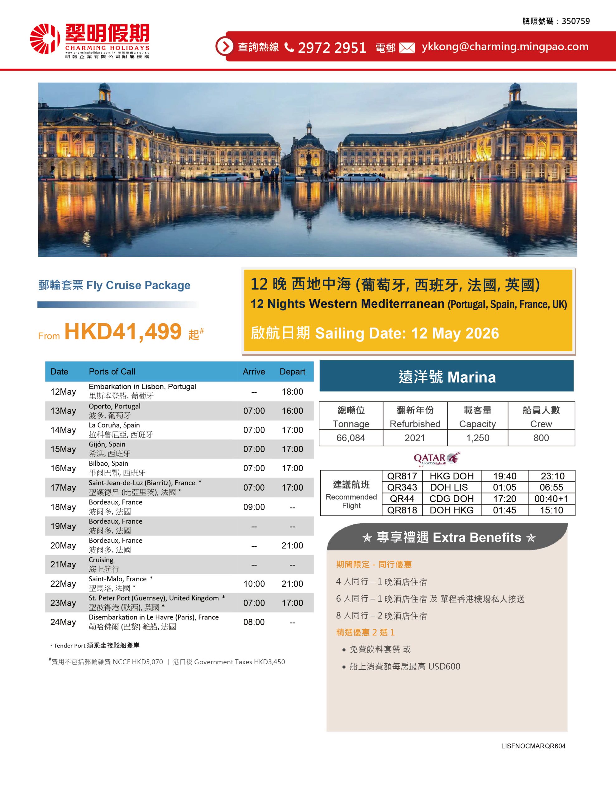 MSC郵輪(德、西、法、意、馬耳他、中東、北歐)