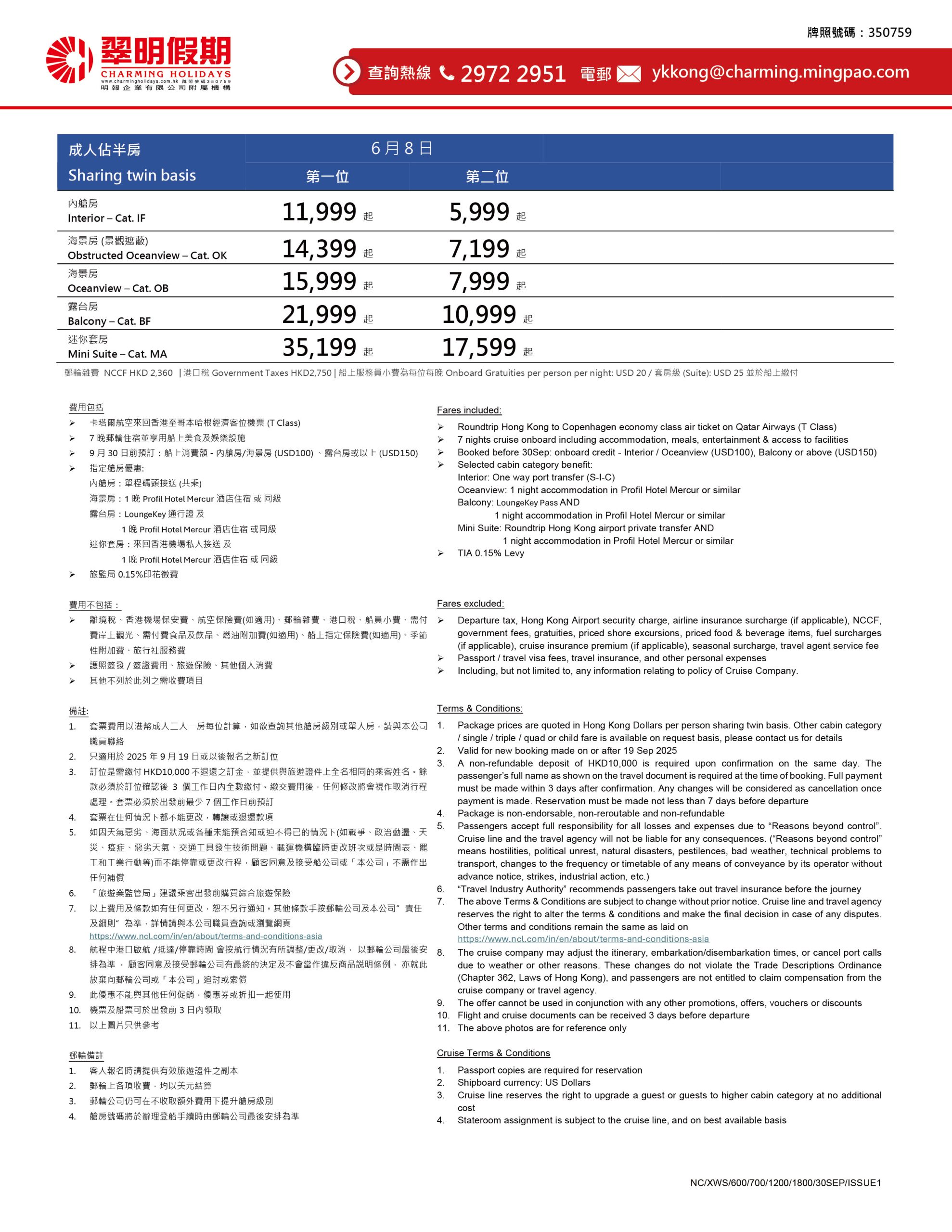 MSC郵輪(德、西、法、意、馬耳他、中東、北歐)