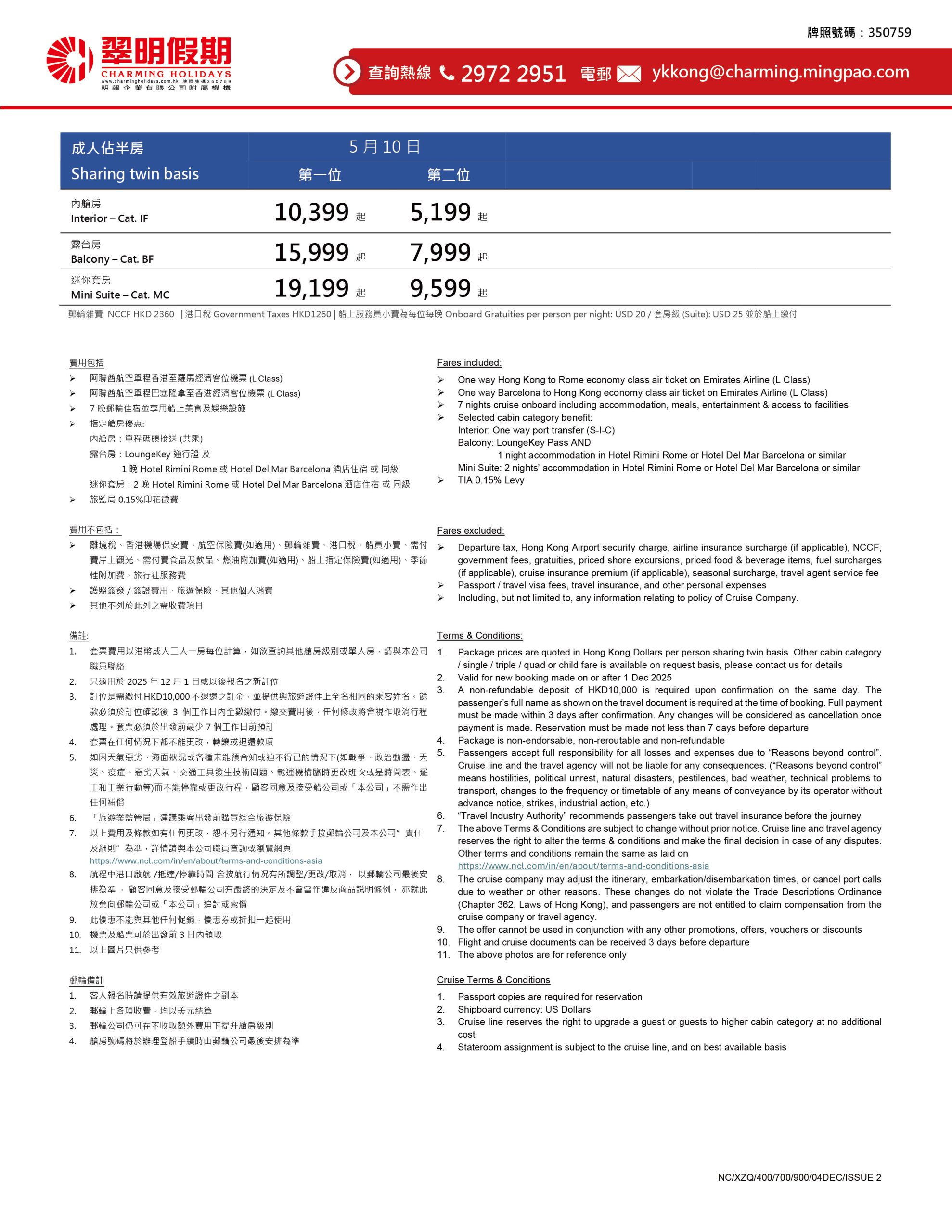 MSC郵輪(德、西、法、意、馬耳他、中東、北歐)