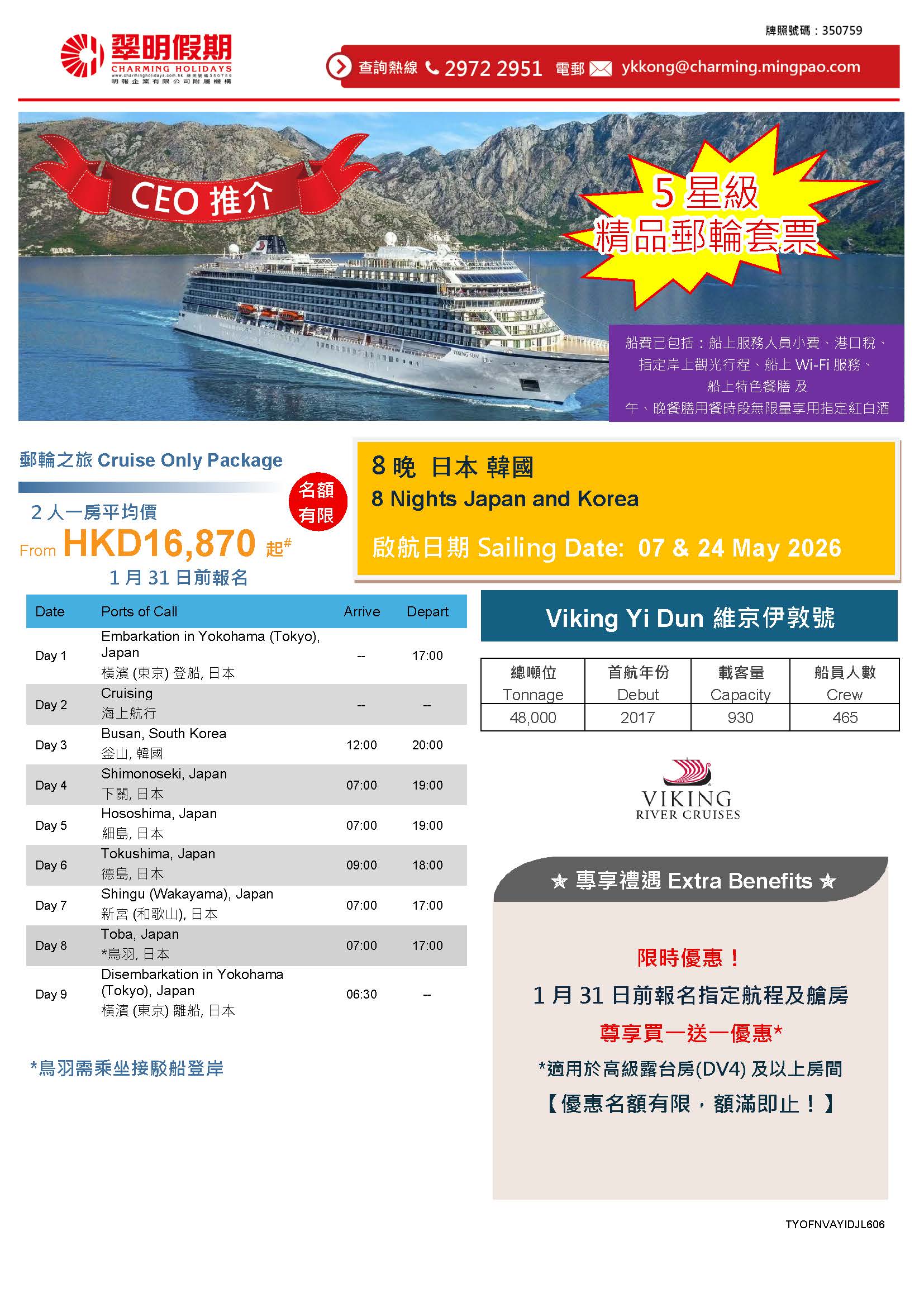 維京伊敦號 – 8晚 日本 韓國 5星級精品郵輪套票