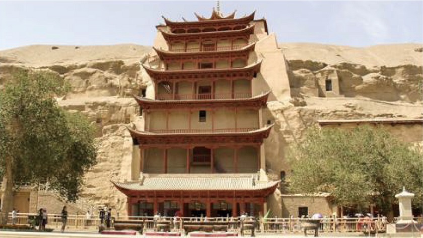 莫高窟: 俗稱千佛洞,由敦煌莫高窟數字展示中心和莫高窟實體洞窟兩部份組成。 它是集繪畫、建築、雕塑為一體的立體藝術。 現存492個洞窟,它的洞窟數量能如此龐大,有- 最大原因;敦煌因地處中原、西域交匯處,絲綢之路的商旅過客,為求西行異域能平安、順利或歷險締來時,對佛祖的庇佑,由衷的感謝, 故紛聘請藝術匠師為其雕鑿塑像、繪製壁畫