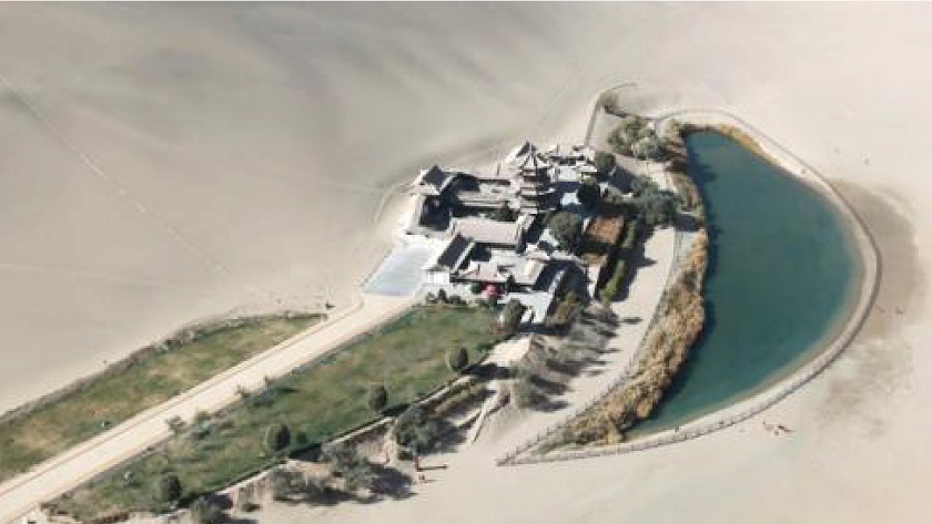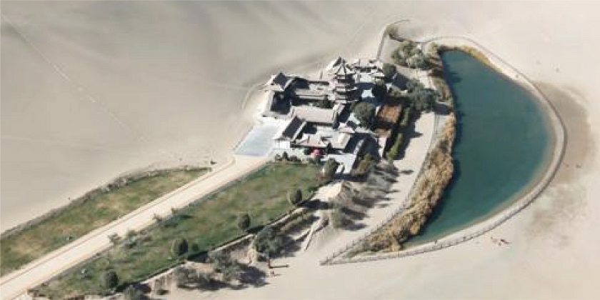 月牙泉:月牙泉在鳴沙山懷抱之中,顧名思義,她因形似月牙而得名,茫茫大漠之中此泉永不乾涸、沙填不滿,實乃一大奇景。