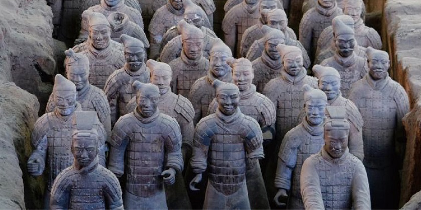 秦始皇陵兵馬俑: 兵馬俑是古代墓葬雕塑的一個類別。它是中國古代輝煌文明的一張金字名片,也被譽為世界十大古墓稀世珍寶之一。