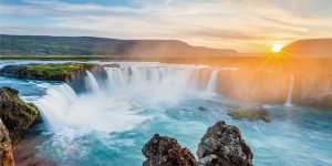 【塞里維蘭瀑布】位於冰島南部,可近距離欣賞50米高的塞里維蘭瀑布,瀑布直瀉而下,水飛四濺。瀑布後有一凹洞,遊客可在瀑布後面行走,有如進入水簾洞一般。