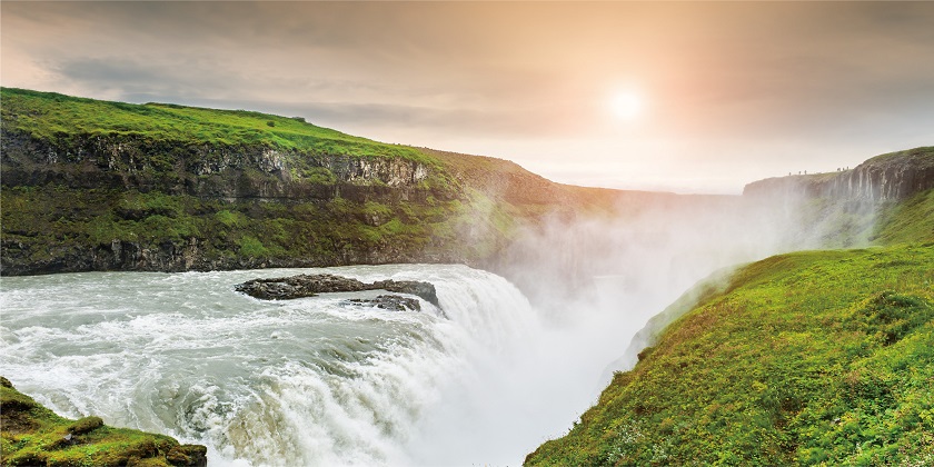 【黃金瀑布】冰島的第二大瀑布,以宏偉及美麗見稱,此瀑布分為兩層,河水從附近的冰川溶化匯聚而成。