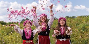 【卡贊利亞】早在三百多年前,保加利亞已開始大規模種植玫瑰。一開始是在卡贊利亞培育,後來擴大到卡爾洛沃谷地,這兩處相連的谷地東西兩面長超過120公里,有河流貫穿其中,整個相連區域為保國玫瑰的主要產地,被譽為「玫瑰谷」。如今保國盛產七千多種玫瑰,成為吸引各國旅客的旅遊勝地。