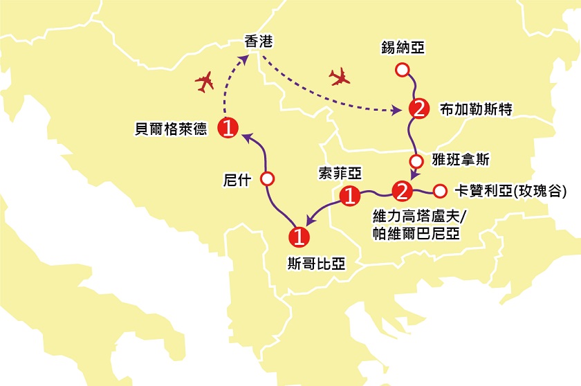 注意:如乘坐阿聯酋航空公司,將於出發日期第一天晚上集合及於第二天凌晨航班起飛經杜拜轉機後飛往羅馬尼亞首都~布加勒斯特。所以此團的天數改為9天,比選乘其他航空公司客機少一天,而行程內容保持不變,敬請留意。
