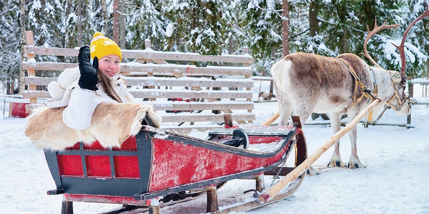 【馴鹿拉雪橇】安排乘坐馴鹿拉動的雪撬車。