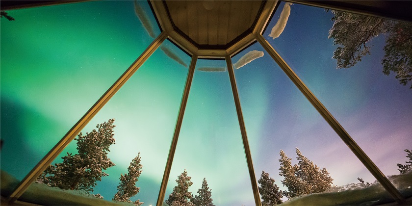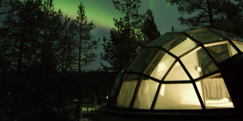 【玻璃屋酒店】躺臥在玻璃屋內,欣賞廣寬夜空,感受寒冬的奧秘。在黑夜中,更可追蹤如夢似幻,可遇不可求的北極光(AURORA BOREALIS),找尋祥和的信念。