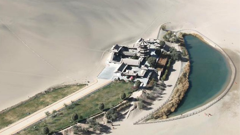 遊覽天下一大奇景的【鳴沙山月牙泉】。月牙泉在鳴沙山懷抱之中,顧名思義,她因形似月牙而得名,茫茫大漠之中此泉永不乾凅、沙填不滿,實乃一大奇景。
