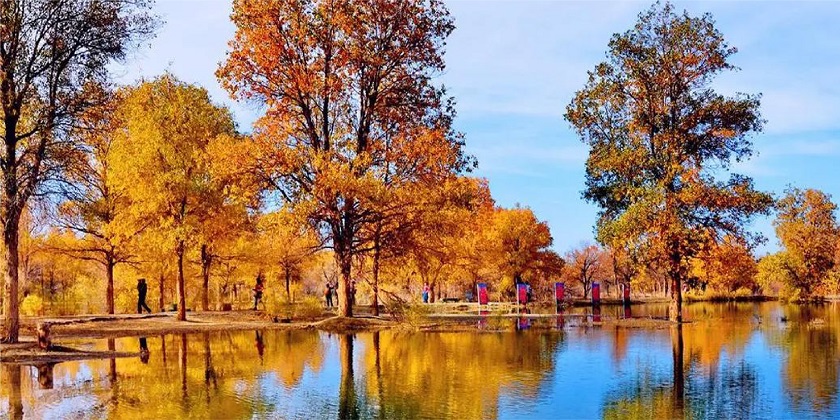 金塔胡楊林:位於古絲綢之路中段北側、甘肅省金塔縣城西北8公里處,由胡楊林-金波湖核心遊覽區、沙棗林觀光區、瀚海紅柳林保育區、沙漠娛樂體驗區和沙漠蘆葦迷宮區五個功能區組成,占地面積達8萬余畝,景區內分布著西北地區最大的「化石級植物」萬畝胡楊林,極具觀賞價值。