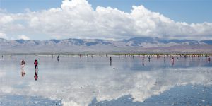 遊覽被譽為「天空之境」的【茶卡鹽湖】。這是一座有三千多年歷史的鹽場,湖水含鹽量很大,會自然結晶成為一片白色的湖面,將天空、雲朵和山都倒映在湖面。