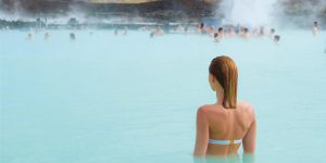 【藍湖】位於雷克雅未克39公里外著名的旅遊勝地,是冰島一處著名的地熱溫泉。藍湖由部份火山熔岩形成,水溫約37-39oC。湖水富含硅、硫等礦物質。是喜愛溫泉人士之天堂,團友可一嘗泡溫泉之樂趣(入場費及毛巾已包括在內,請自備泳衣) 及包一杯飲品。