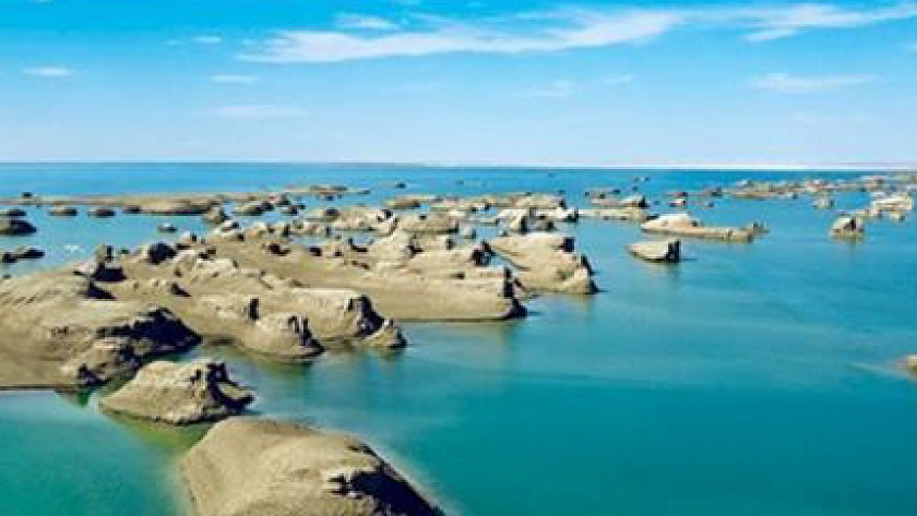 烏素特水上雅丹:烏素特水上雅丹地質公園是一處水上雅丹的特色地質地貌,因為吉乃爾湖面擡升,逐步淹沒北緣的雅丹群,形成了獨特的水上雅丹,魔幻而神秘。