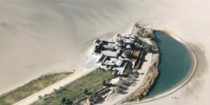 月牙泉:月牙泉在鳴沙山懷抱之中,顧名思義,她因形似月牙而得名,茫茫大漠之中此泉永不幹凅、沙填不滿,實乃一大奇景。