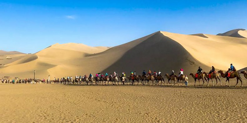 當天遊覽:鳴沙山月牙泉(安排乘騎駱駝山上+乘電瓶車下山+鞋套一對)