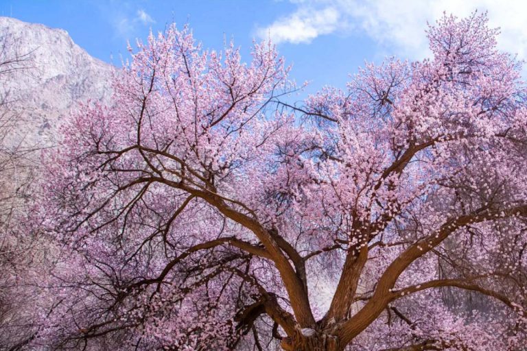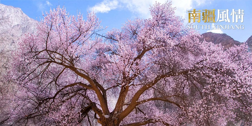 帕米爾高原杏花:主要位於「塔莎古道」沿線,座落在群山深處的原始塔吉克族村落之中。在這裏葉爾羌河谷深藍的冰川雪水、初春盛開的野杏花與昆侖山的雄渾蒼涼形成了鮮明的對比,帶給人強烈的視覺差。