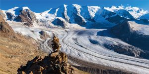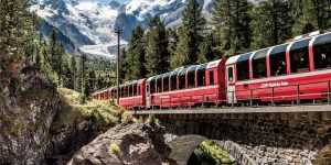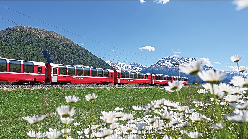 穿梭迂迴曲折路線,爬越 7400 英呎伯連那關(Berninapass),全程投入迷人火車旅程。火車途經羅曼語區波芝亞和,古典優雅。遠望冰川,緊接山勢而下,美景隨處可見。