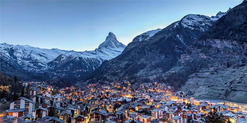 【采爾瑪特】此城周圍由36座4000米以上名峰所環繞,由於環保關係,村內只有電氣化車輛及馬車供行駛。舉世聞名的「馬特洪峰」則為此風景區的攝人景緻與重點景觀。