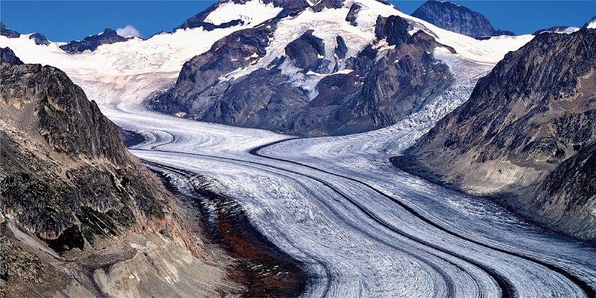 【阿萊奇冰川】乘吊車登山,觀賞阿萊奇冰川及鄰近美景。阿萊奇冰川長 23 公里,是阿爾卑斯山脈中最長及美麗的一條冰川,蜿蜒之姿,壯觀異常。團友亦可沿山徑獵影。