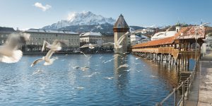 【琉森】通向瑞士中心的大門,位於琉森湖畔如畫的風景區,鑲嵌在令人難忘的山嶺間。因著它的風景名勝、精美紀念品和名錶專門店,吸引遊人無數。