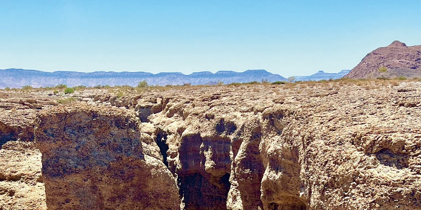 【斯林峽谷】因長期被大自然侵蝕,峽谷長1公里,深30-40米,峽谷兩側聳立的斷崖、黃色光禿的岩壁及被風化侵蝕坑洞。