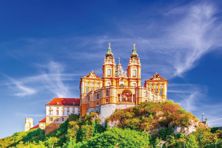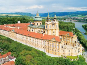【梅爾克修道院】在2000年與整個瓦豪河谷一同被列入世界文化遺產。站在小山頂俯瞰這座巨大的淡黃色建築,可能會以為這是一座宮殿,很少有人會猜到這裡其實是一座本篤會修道院的所在地。隨導遊參觀梅爾克修道院,可以探索美麗的花園,欣賞著名的圖書館。這座建築不僅體現了巴洛克時期的奢華,更見證了修道士長期以來的生活與信仰。