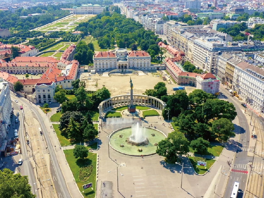 【維也納市內觀光】前往市政公園內欣賞華爾茲大王約翰·史特勞斯的紀念像。繼而前往市中心的環城大道,大道兩旁全是宏偉的建築,如荷夫堡皇宮、英雄廣場及瑪麗亞·特蕾西亞皇后廣場等。