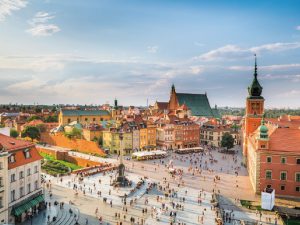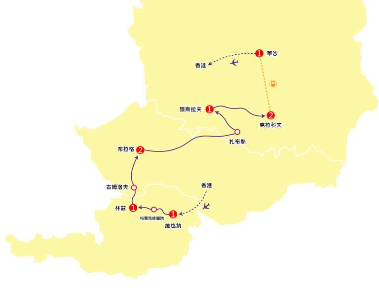 早上乘坐高鐵前往波蘭首都華沙,車程約兩小時,省時舒適,沿途欣賞波蘭田園景色。