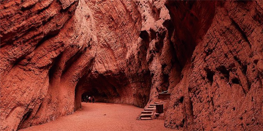 遊覽新疆最美的[天山神秘大峽谷】。偉岸剛勁的紅色山體似有驚天地泣鬼神、愴然壯烈之美,《中國家地理》評選其為中國十大最美峽谷之一。