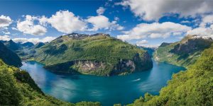 【挪威蓋倫格峽灣】乘觀光船暢遊蓋倫格峽灣(漫遊海勃爾特及哥義郎格區域之風光路段)。峽灣於百多萬年前由於地球氣溫改變,冰覆地帶冰川融化而形成,由於峽灣偏狹的關係,「七姐妹」及「新娘面紗」之風光路段,更享譽世界。