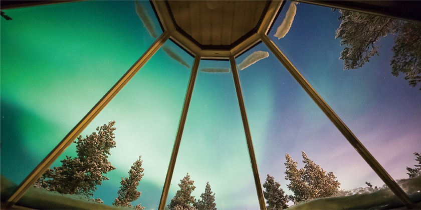 【玻璃屋酒店】躺臥在玻璃屋內,欣賞廣寬夜空,感受寒冬的奧秘。在黑夜中,更可追蹤如夢似幻,可遇不可求的北極光(AURORA BOREALIS),找尋祥和的信念。