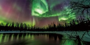 【黑夜追蹤北極光】黑夜中乘坐專車前往極光觀賞營,追蹤如夢似幻的北極光,由專人解說北極光的傳說與資料。在溫暖營火會中享用熱飲及小吃。