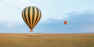【熱氣球之旅】清早乘坐熱氣球升空,高角度觀賞草原上成千上萬的動物生態,蔚為奇觀;接著熱氣球在草原某處降落,齊來享用一頓叢林早餐,舉杯為這熱氣球之旅畫上完美句號。下午再乘車進入瑪莎瑪拉野生動物保護區,領略非洲曠野的無盡生機、動物之間的弱肉強食、飛鳥的自由自在,樂趣無窮。