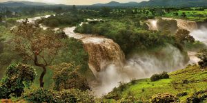 【藍尼羅河瀑布】是藍尼羅河的第一道大瀑布,高37至45米,豐水期最寬可超過 400 米。近距離欣賞壯觀瀑布傾瀉而出,水花激濺,煙霧瀰漫,當地人稱為Tislsat為『煙霧』之意。