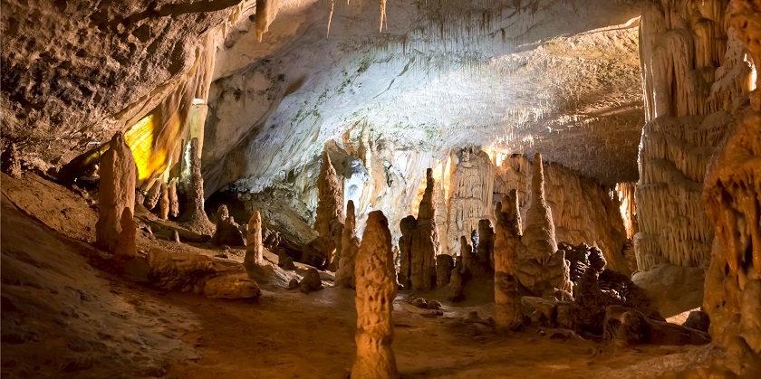 【布斯當娜鐘乳洞】乘小火車進入歐洲著名的布斯當娜鐘乳洞,洞內鐘乳石嶙峋處處,配以柔和的燈光,成為一幕天然景觀。