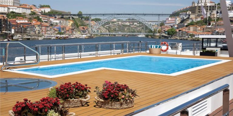 聖加伯列號設計採用美麗的光滑瓷磚、拋光木材和夏日色調,為船上帶來了葡萄牙的活力,而日光浴甲板泳池則吸引乘客在陽光下放鬆身心,同時沉浸在周圍自然美景中,感受美麗的杜羅河谷。