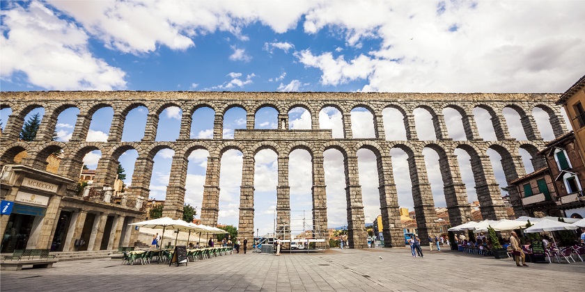 【羅馬水道橋】屹立二千年,長728公尺,以瓜達拉馬山上的花崗岩為主要建材,採用堆疊方式並沒有任何混凝土材料建造,工程技術令人讚嘆不已。