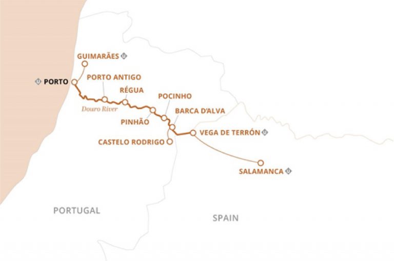 聖加伯列號沿著杜羅河穿過葡萄牙進入西班牙時,經過陡峭的梯田山坡、古色古香的村莊和數英畝的成熟葡萄園。探索波圖歷史悠久的里貝拉區。蜿蜒穿過聯合國教科文組織指定的杜羅河谷的壯麗風景,走訪迷人的酒莊並與酒莊的釀酒師,細談釀酒趣味。漫步西班牙著名的薩拉曼卡大學。沒有比乘坐這杜羅河遊船更好的方式來發現歐洲最保守的秘密了!