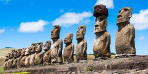 【復活節島】面積大約166平方公里,人口大約四千人。位於島上中部之雕像「Ahu Akivi」巨大平台上矗立著七座雕像,特別之處是向海而立,有別於其他石像背海面向內陸的擺放。全島唯一的一尊有眼睛及頭戴紅帽的雕像;傳說有眼睛的Moai便擁有神奇力量,但為何現在只剩下一尊擁有眼睛呢?團友可藉此親身揭曉謎團。