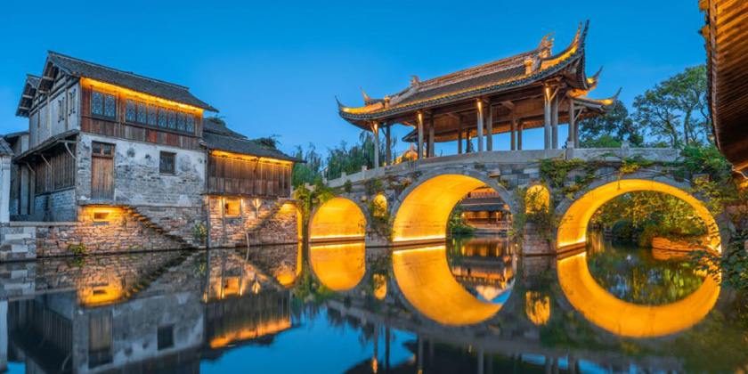 濮院古鎮 : 濮院氣候溫和,水網密佈,土地肥沃,被譽為「魚米之鄉,百花盛地」,曾以「日出萬匹綢」成為「嘉禾一巨鎮」