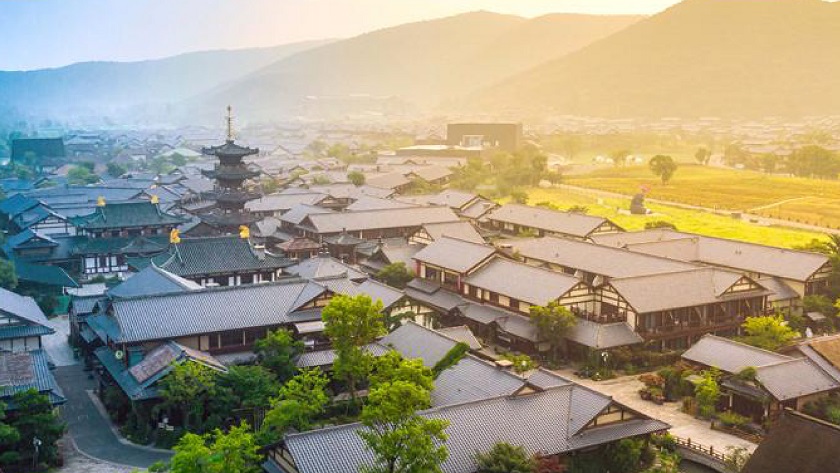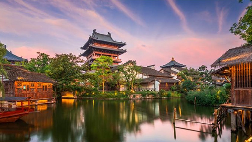 拈花灣禪意小鎮: 拈花灣,取自佛祖拈花一笑的典故,外形如佛祖手指拈花,景觀中無不透露出東方「禪境」之美。