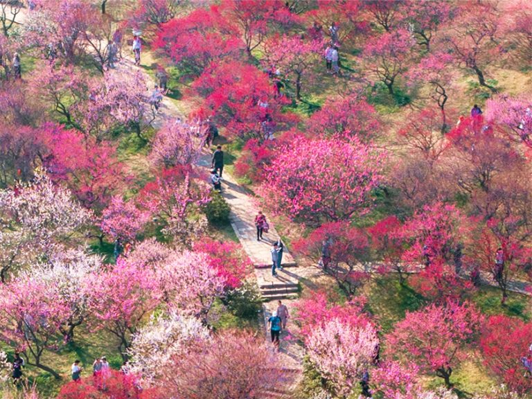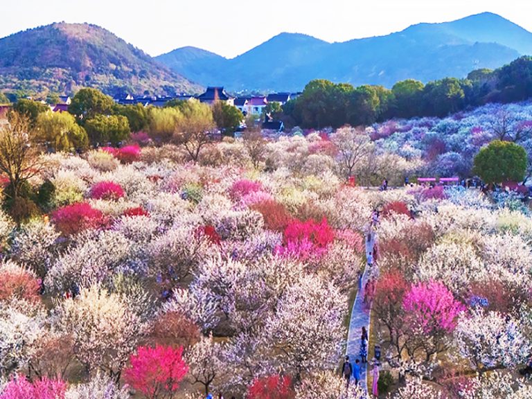 西溪濕地(國家5A級):西溪探梅是杭州市西溪國家濕地公園核心景觀,現存梅林300畝、梅樹兩萬餘株,主要分佈於梅竹山莊、西溪梅墅。景區歷史可追溯至南宋輩道植梅,明代形成探梅景緻,清初被列為西湖十八景之一,現存梅花品種包括江梅、宮粉梅、殊砂梅、綠萼梅、玉蝶梅、美人梅等。