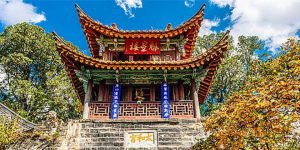 金殿:金殿初建於明萬曆三十年(1602年),由雲南巡撫陳用賓仿照湖北武當山天柱峰的太和宮及金殿樣式建造金殿為方形,是中國現存最大最完整的純銅鑄殿。
